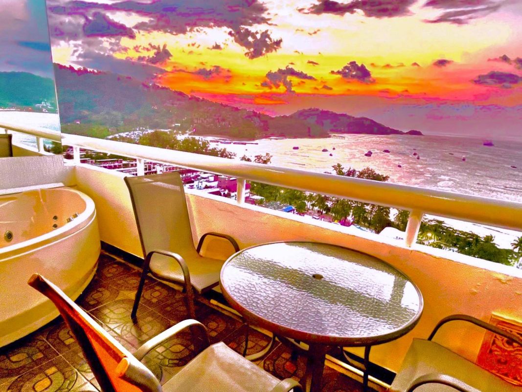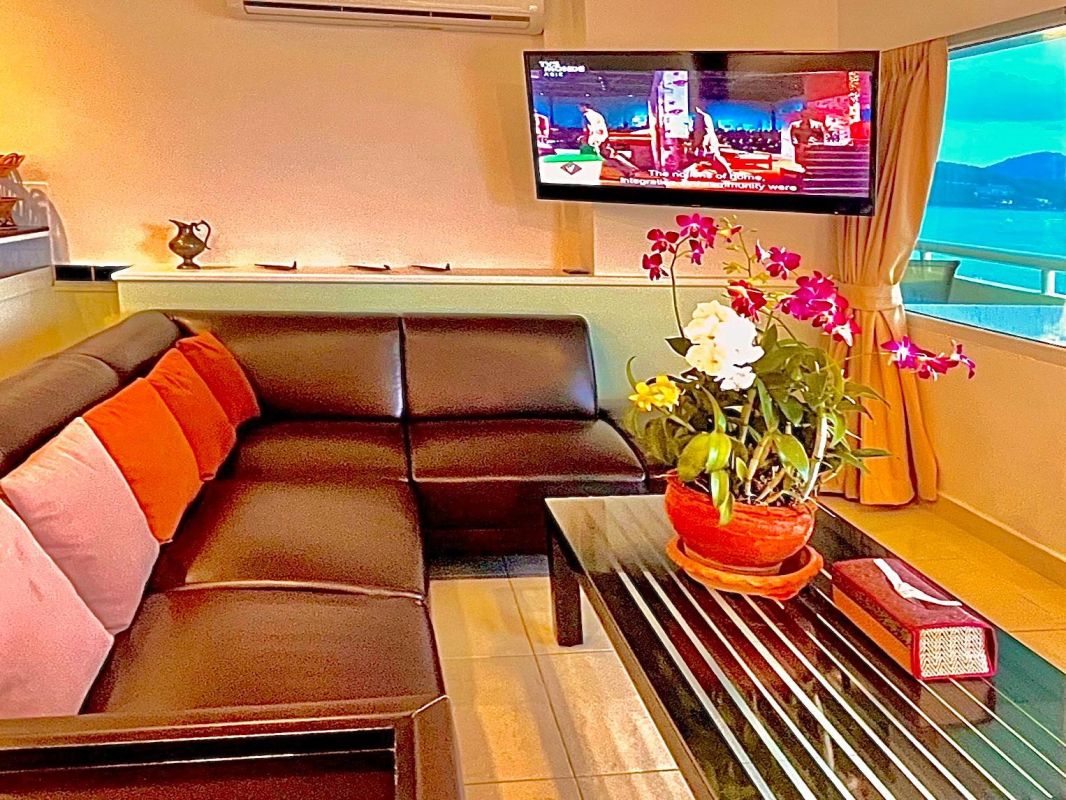Located on the 17th floor, this spacious apartment features a spa bath and a private balcony with sea views. It includes a kitchenette with a dining area and a living area with sofa.