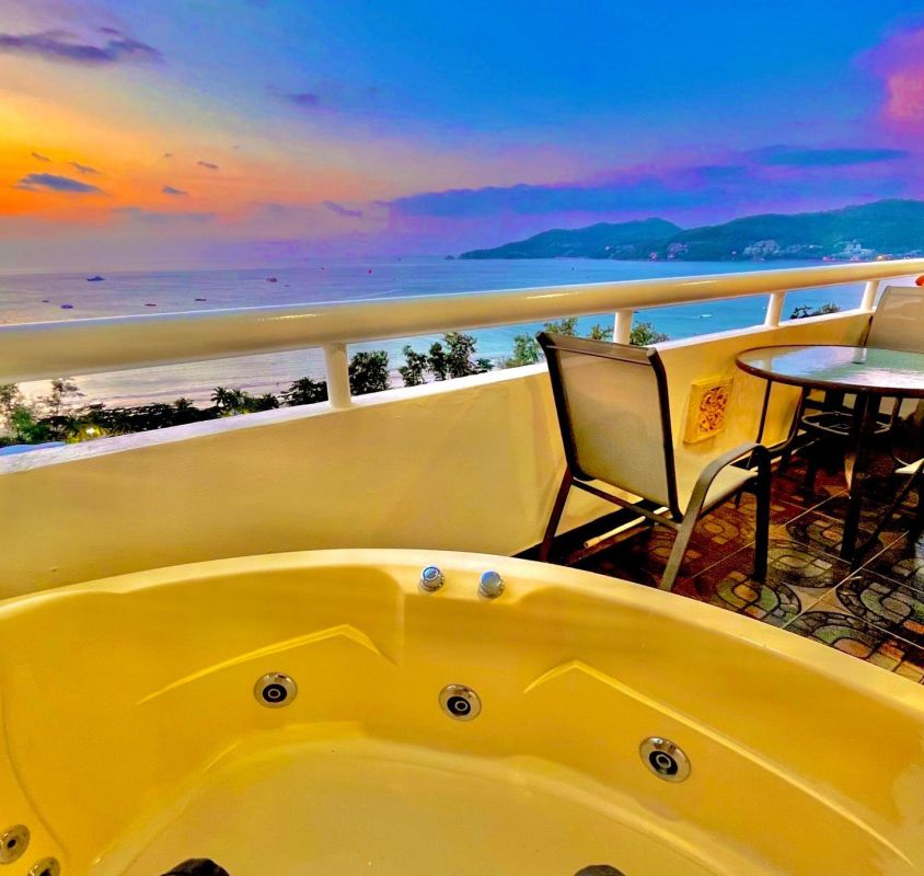 Apartment facilities : balcony, sea view, DVD player, cable channels, flat-screen TV, safe, air conditioning , seating area, fan, sofa, tiled/marble floor, parquet/parquet floor, wardrobe/wardrobe, shower, spa bath, toilet, bathroom, refrigerator, microwave, kitchen, dining area, electric kettle, kitchen utensils, toaster, coffee machine